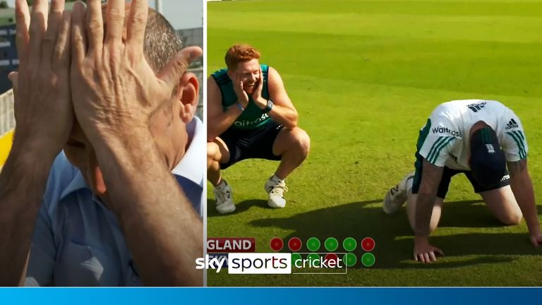 It’s Team England vs Team Sky! Ben Stokes, Jonny Bairstow, Nasser Hussain and Michael Atherton take part in a penalty shootout during England’s 2016 tour of India
