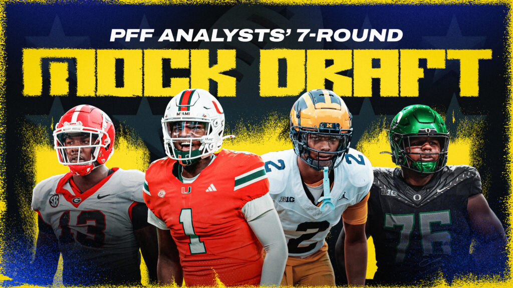To kick off the week of the 2025 NFL Draft, 32 senior PFF analysts gathered to conduct a seven-round mock draft. The analysts carefully assessed each player’s strengths and weaknesses, their team needs and overall draft strategy to create a comprehensive look at all seven rounds.